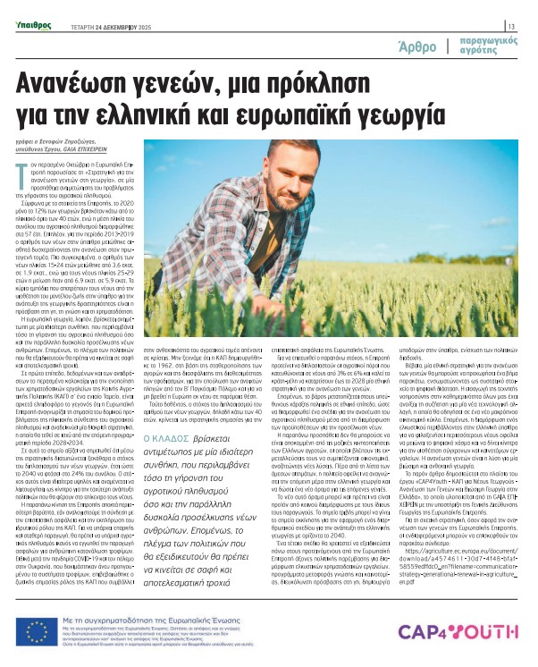 Μάθετε περισσότερα στο άρθρο του Ξενοφών Ζημοζιώγα, Υπεύθυνου του έργου CAP4Youth της GAIA ΕΠΙΧΕΙΡΕΙΝ, στην εφημερίδα Ύπαιθρος Χώρα.